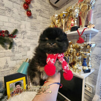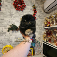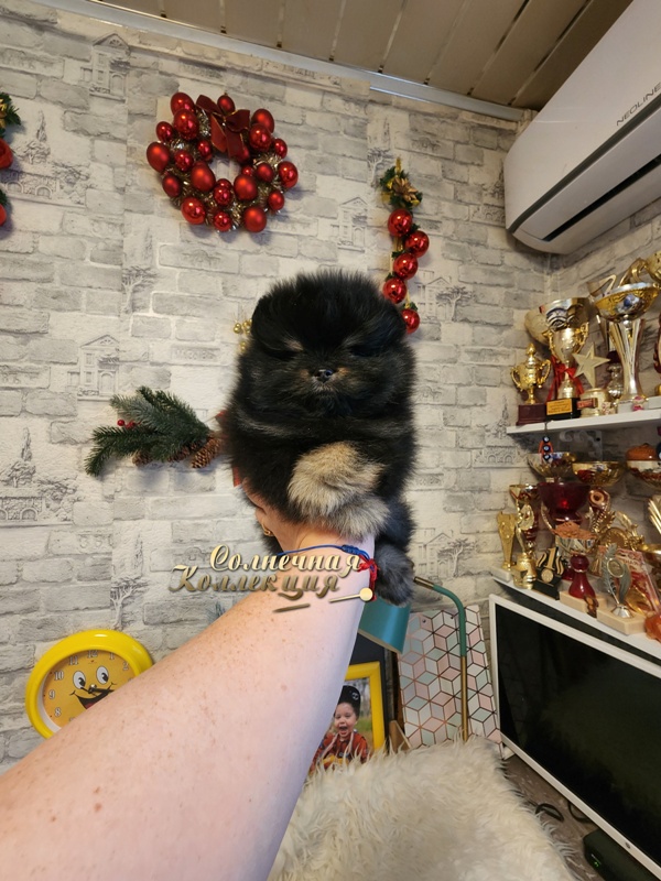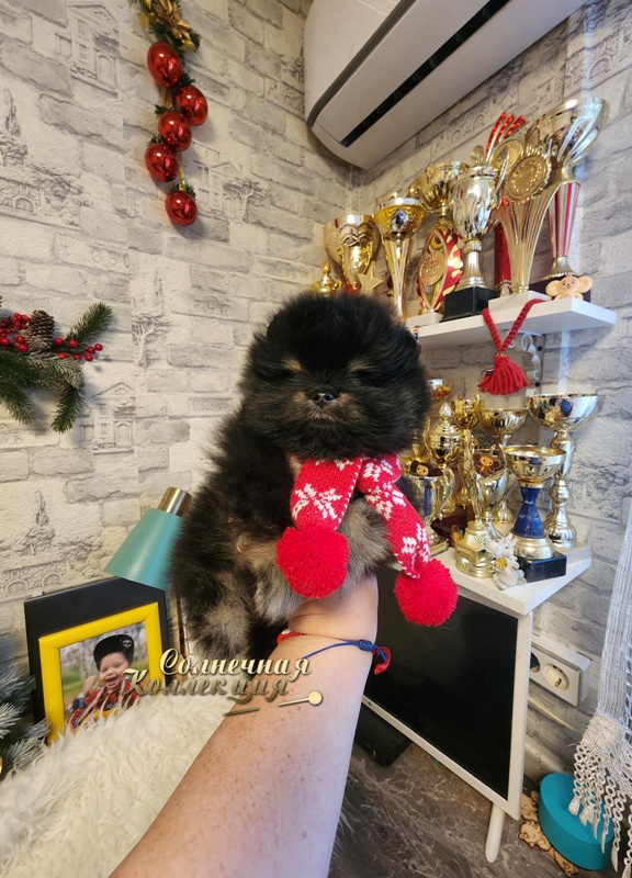 Супер меховой,толстолапый,с короткой мордашкой ,в редком эффектном окрасе- черно подпалый,мальчик померанского шпица ...